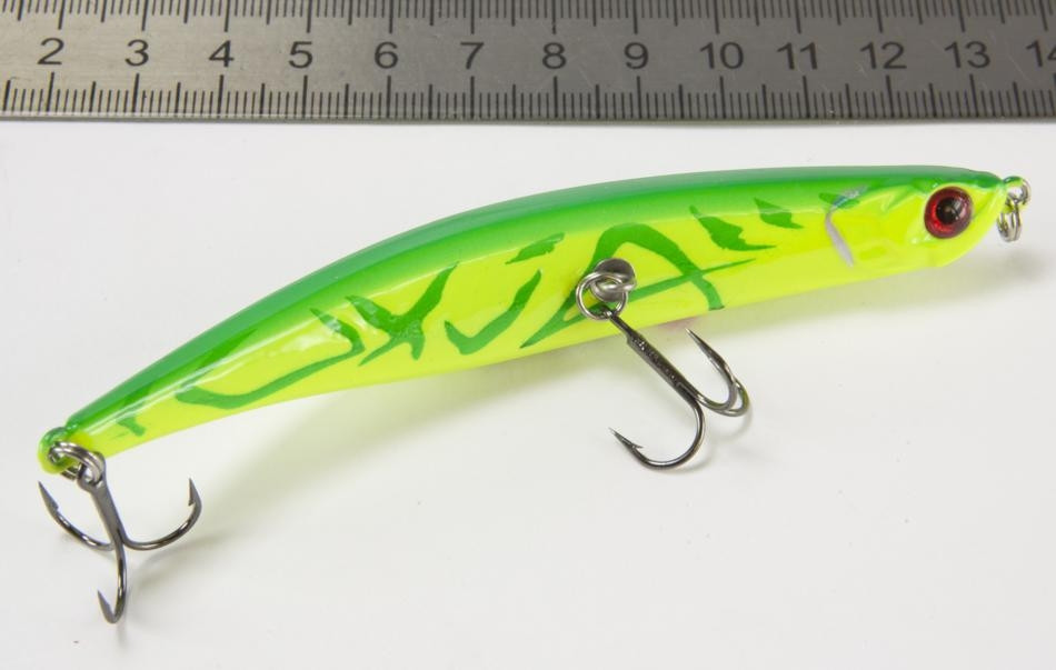 Воблер для рывковой проводки и анимации. Система огрузки расположена таким образом, что ZigZag лежит всегда на боку, плюс его стабилизирует нижний тройник. Все это создано для имитации раненой, почти умирающей рыбки, которая лежит у самой поверхности.