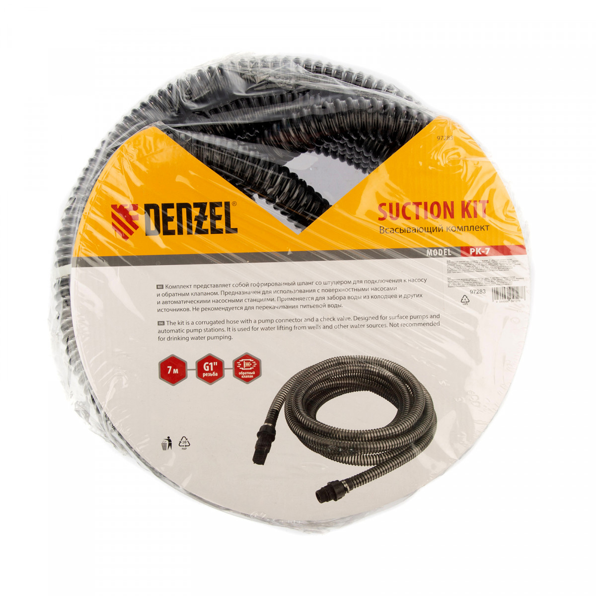 Всасывающий комплект Denzel РК 7 97283 с присоединительным диаметром 1 дюйм, со шлангом длиной 7 м м обратным клапаном, используется с поверхностными насосами и автоматическими насосными станциям Denzel. Благодаря встроенному фильтру, очищающему поступающую воду, ее можно набирать не только из искусственных резервуаров, но и из естественных водоемов.