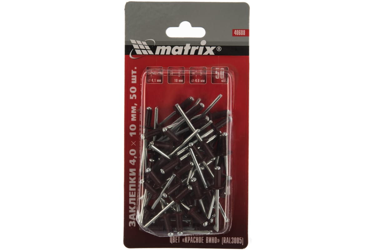 Заклепка 4,0*10 мм RAL 3005 красное вино 50 шт Matrix