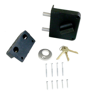 Замок накладной цилиндровый с вертушкой. Предназначен для установки на деревянные двери. Засов из двух цилиндрических ригелей диаметром 13 мм, с максимальным вылетом 30 мм. Удаление ключевого отверстия - 60 мм. Габариты замка - 100х108х23 мм. Комплектация - 3 ключа, торцевая планка, накладка. Механизм замка под англ.ключ, идет совместно с корпусом. Закрывание и открывание изнутри производится вертушкой, снаружи ключом.