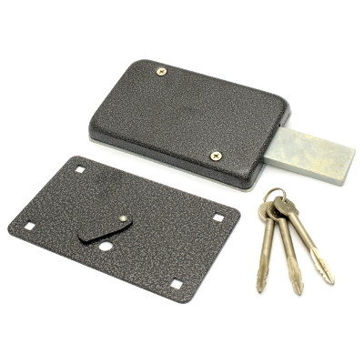 Замок накладной, цилиндровый под крест.ключ, для установки на металлические двери. Засов из прямоугольного ригеля размерами (ширина-высота) 12-40 мм, с максимальным вылетом 75 мм. Удаление ключевого отверстия - 90 мм. Габариты замка -255x110x85. Комплектация - 3 крестовых ключа, внешняя накладка, закрывающая весь корпус замка. Замок односторонний - ключевое отверстие только с внешней стороны.