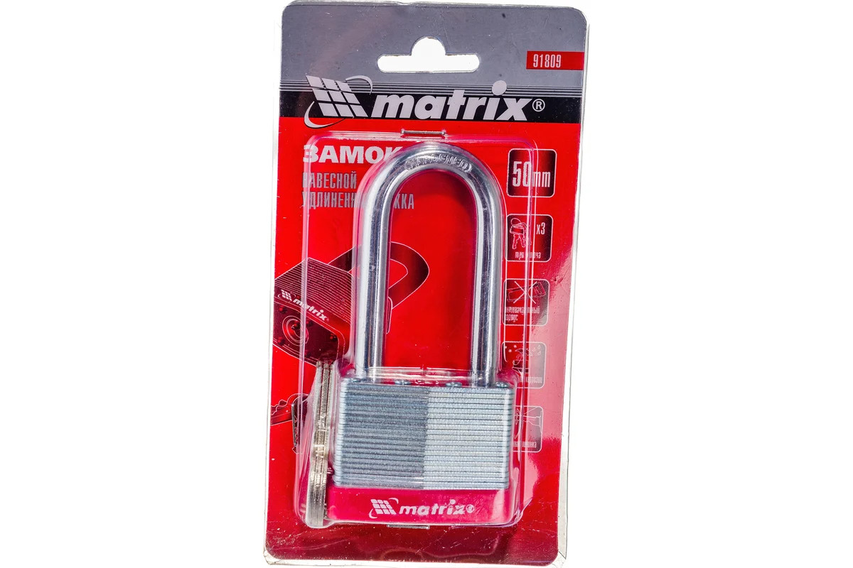 Замок навесной 50 мм удлиненная дужка Matrix