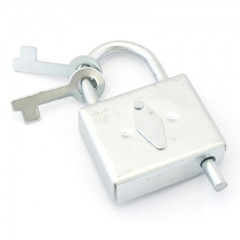 Замок навесной контрольный для бытовых помещений. Материал корпуса - сталь. Стальная дужка диаметром 6,5 мм; проем дужки - 31 мм по высоте и 32 мм по ширине. Габариты корпуса - 60х50х18 мм. Комплектуется 2 сувальдными ключами.