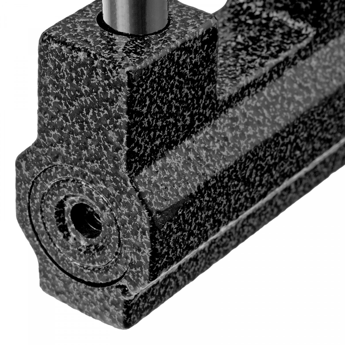 - Прочная конструкция — корпус из высокопрочного чугуна устойчив к повреждениям, стальную закаленную дужку диаметром 11 мм сложно распилить.