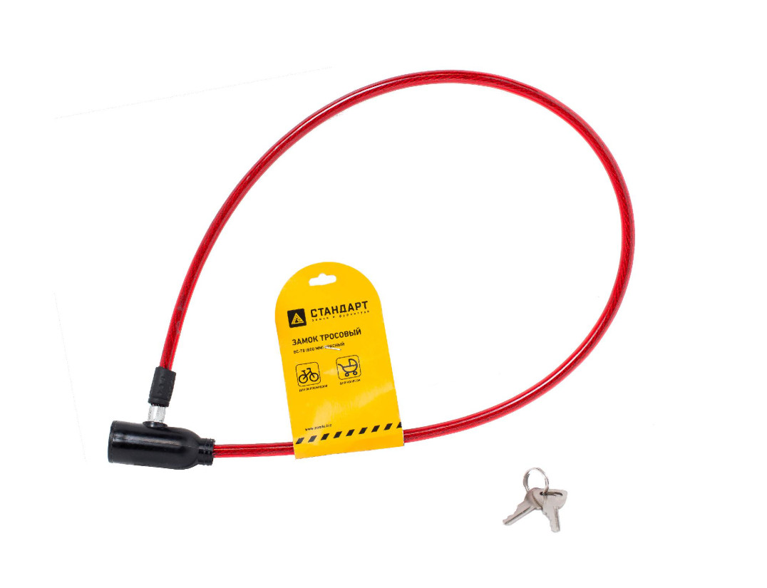 Замок велосипедный тросовый СТАНДАРТ ВС-Т8 800 мм RED красный