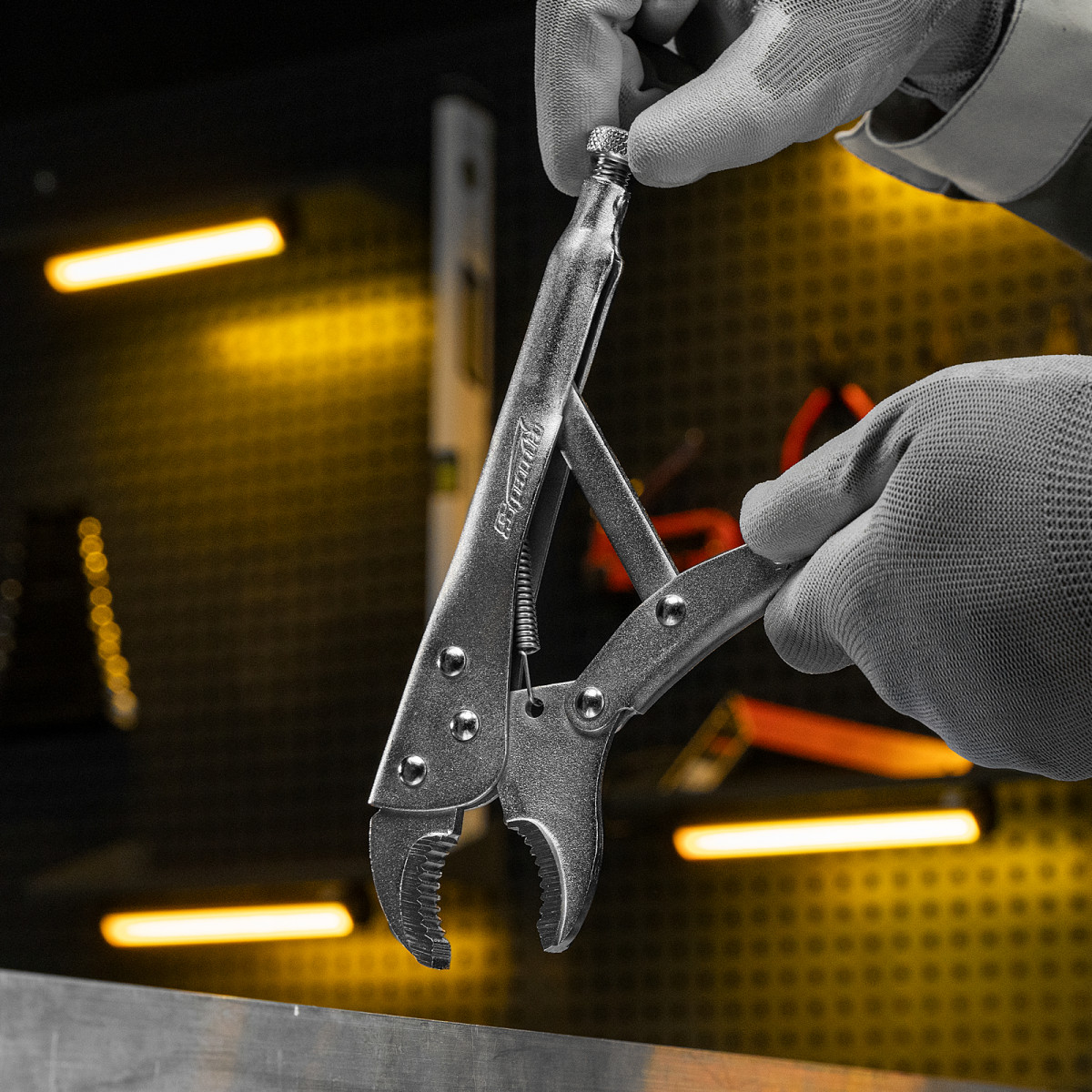 • Точная подгонка по размеру детали — на верхней ручке установлен винт, регулирующий положение губок.