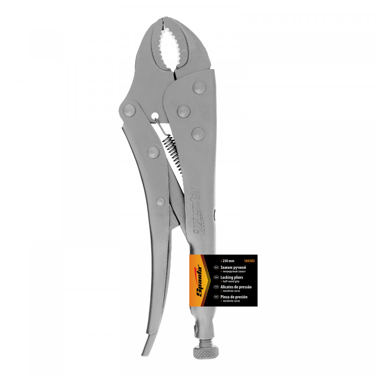 Ручной зажим Sparta 184305 длиной 250 мм, с полукруглым захватом, удерживает заготовки и детали в определенном положении, что облегчает их обработку или сварку. Инструмент используется в строительстве, во время проведения сантехнических работ и ремонта автомобилей, а также будет полезен дома или на даче.