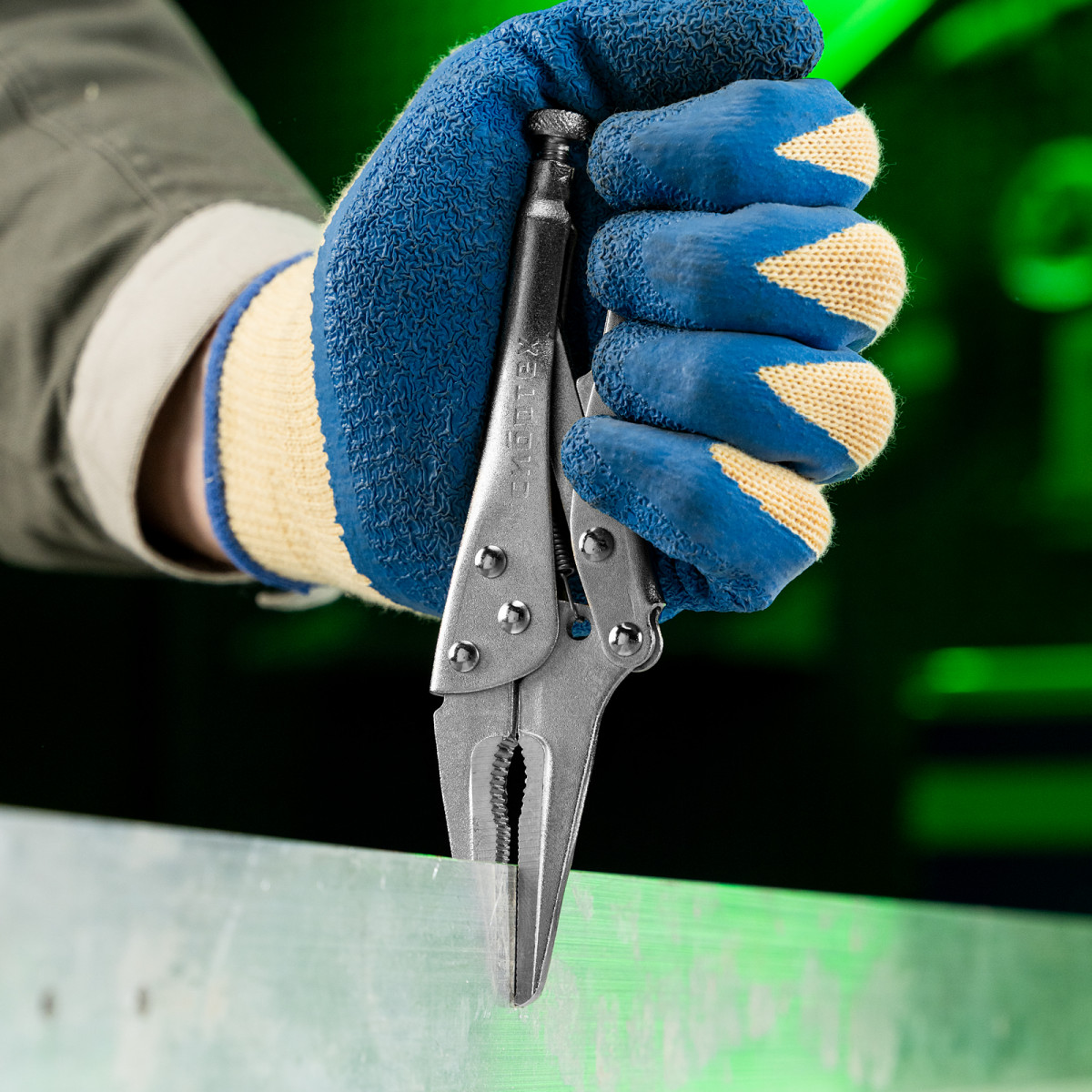 Зажим ручной Сибртех 18423 с удлиненным захватом, 170 мм, используется для проведения слесарных, столярных, монтажных, сварочных работ. Он удерживает разные по форме заготовки и детали, при этом руки мастера остаются свободными для дальнейших действий. Удлиненный захват обеспечивает надежную фиксацию. Инструмент пригодится на строительной площадке, во время ремонта, а также дома, в мастерской или гараже.
