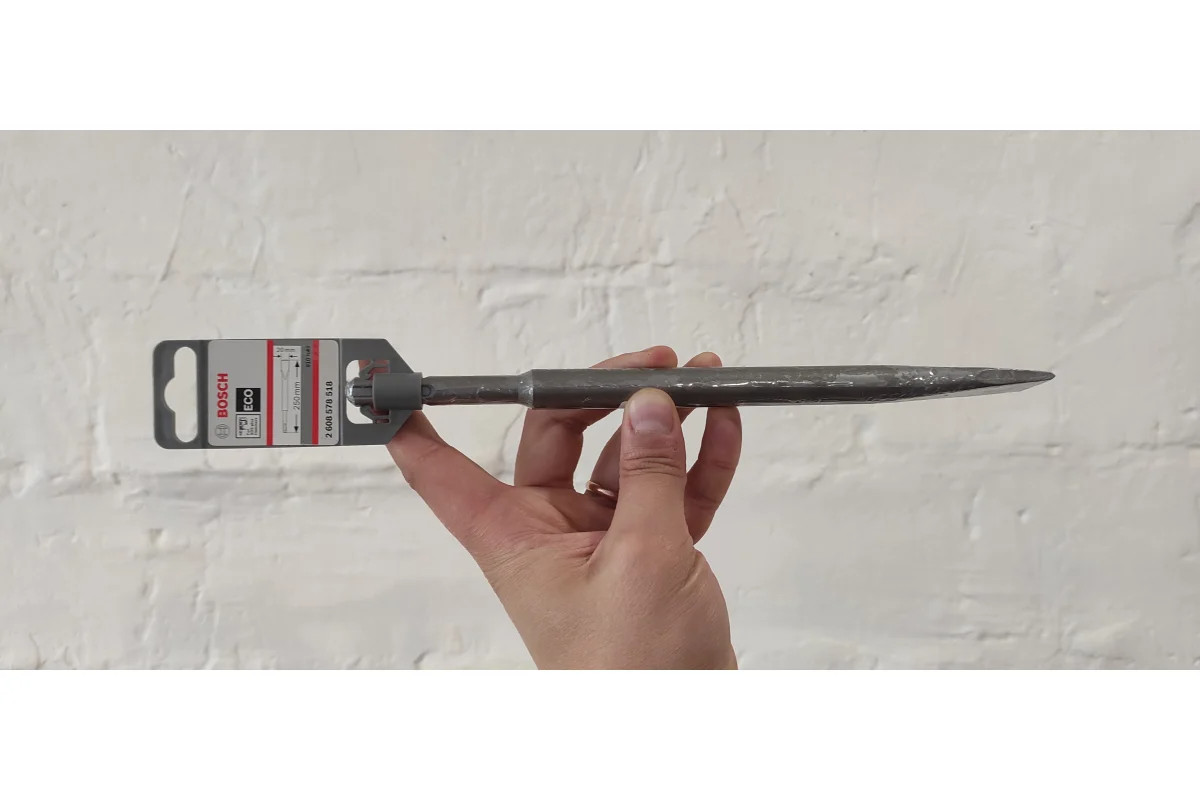 Зубило 20*250 мм SDS PLUS «BOSCH» — это сменная насадка для электрического или пневматического инструмента, предназначенная для долбления, разрушения и обработки твёрдых материалов, таких как бетон, кирпич, камень или асфальт.