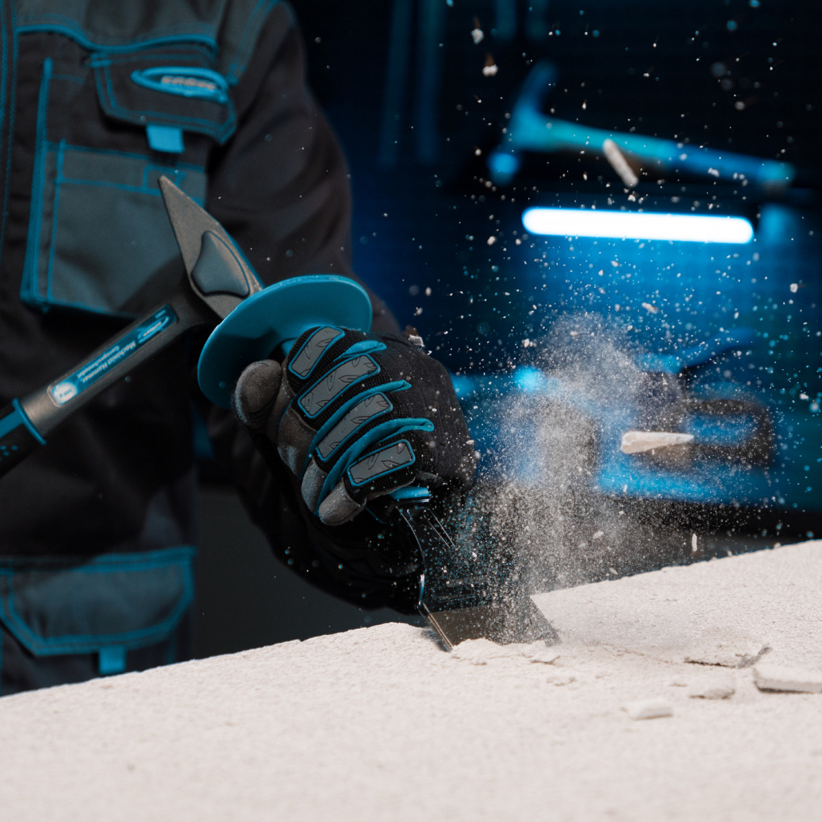 • Безопасность — протектор предотвращает случайное попадание молотком или киянкой по руке.